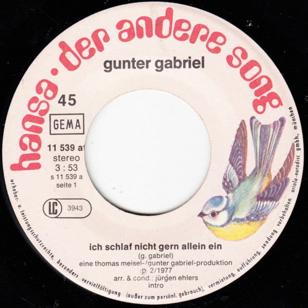 Vinyl / Gunter Gabriel - Ich Schlaf' Nicht Gern Allein Ein / Ein Stückchen Pro Tag