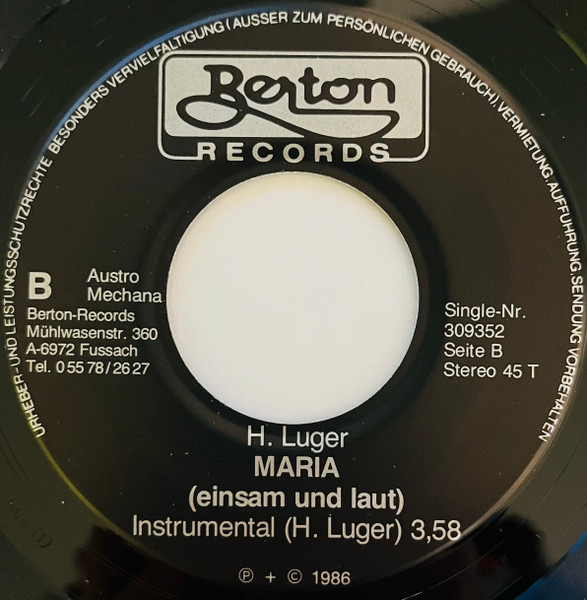 Vinyl / H. Luger* - Maria (Nacht‘s Schreit Mein Herz)