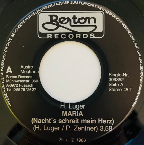 Vinyl / H. Luger* - Maria (Nacht‘s Schreit Mein Herz)