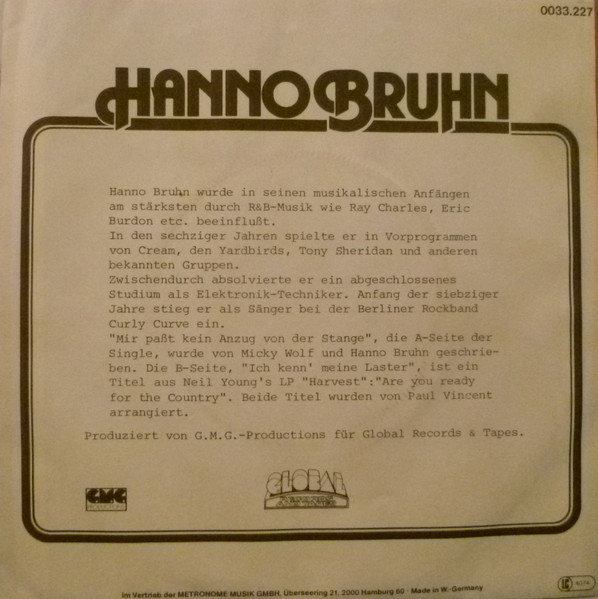 Vinyl / Hanno Bruhn - Mir Passt Kein Anzug Von Der Stange
