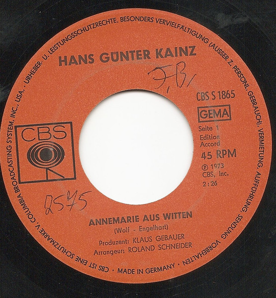 Vinyl / Hans Günter Kainz - Annemarie Aus Witten