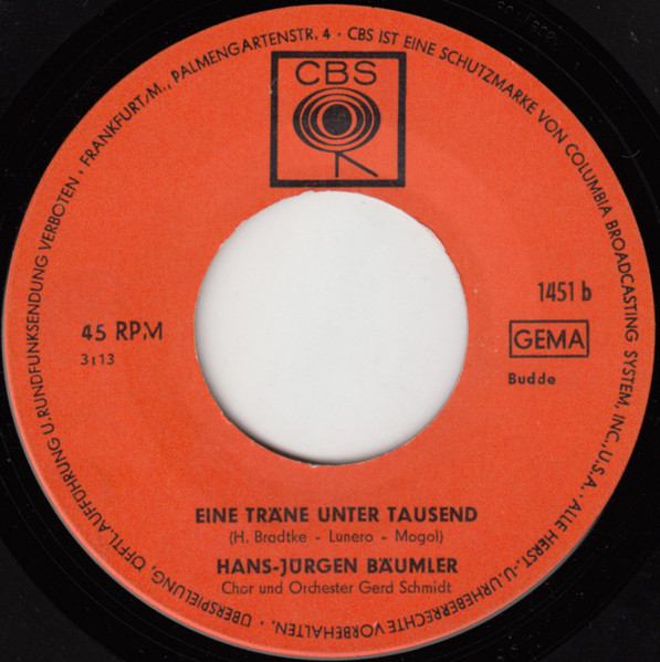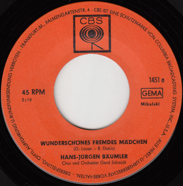 Vinyl / Hans-Jürgen Bäumler - Wunderschönes Fremdes Mädchen / Eine Träne Unter Tausend