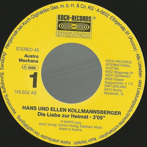 Label: Koch Records International - Cat#: 145.502 AS