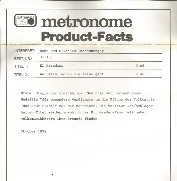 Vinyl / Hans Und Ellen Kollmannsberger - El Paradiso