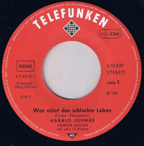 Vinyl / Harald Juhnke - Was Nützt Das Schlechte Leben