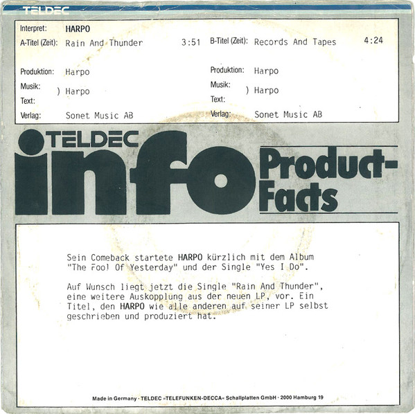 Vinyl / Harpo - Rain And Thunder / Records And Tapes