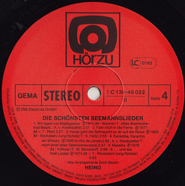 Vinyl / Heino - Die Schönsten Seemannslieder