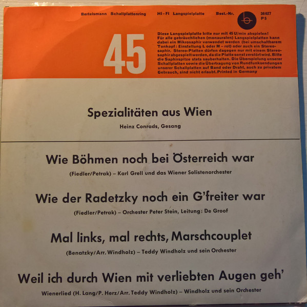 Vinyl / Heinz Conrads - Spezialitäten Aus Wien