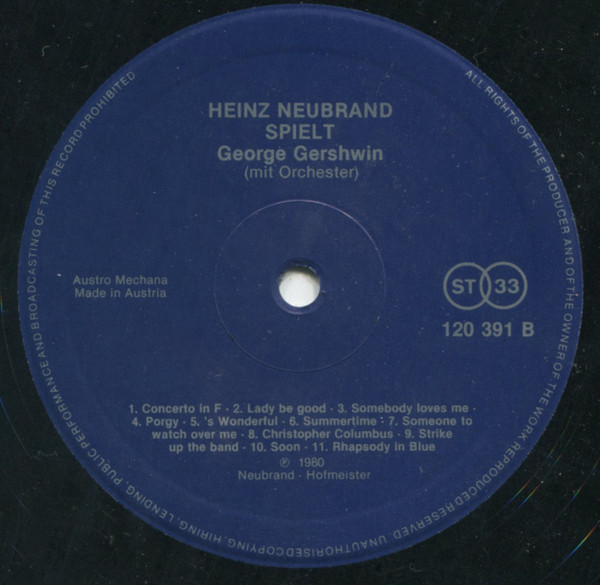 Vinyl / Heinz Neubrand - Heinz Neubrand Spielt George Gershwin