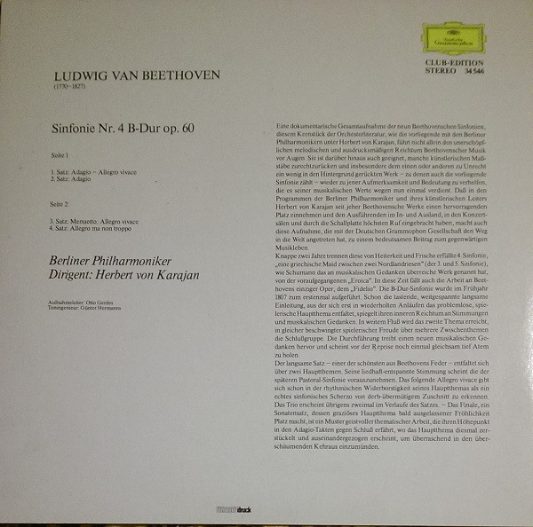 Vinyl / Herbert von Karajan, Beethoven*, Berliner Philharmoniker - Sinfonie Nr. 4