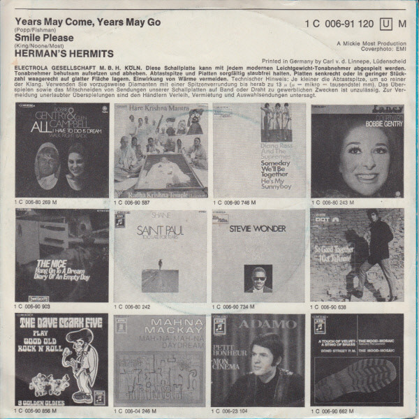 Vinyl / Herman's Hermits - Years May Come, Years May Go / Smile Please