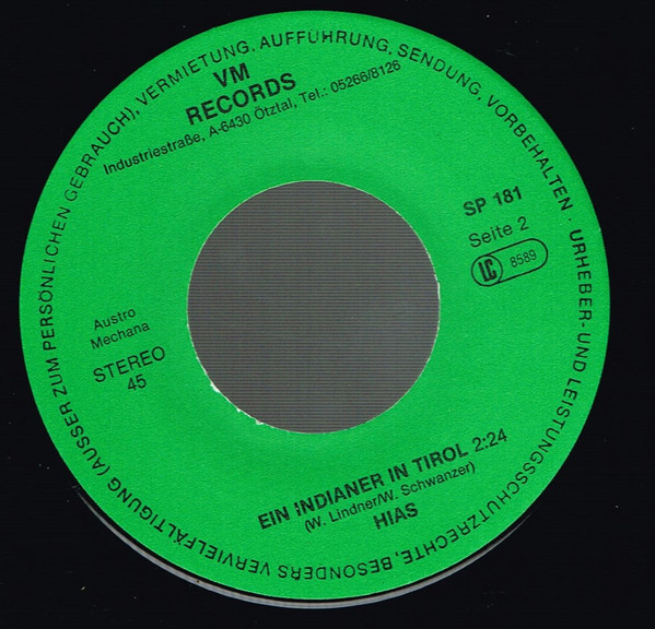 Vinyl / Hias - Was Macht A Papagei In An Solarium / Ein Indianer In Tirol