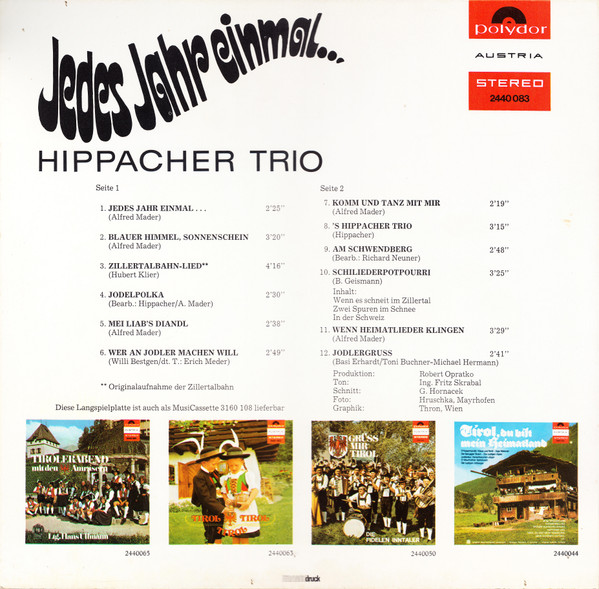 Vinyl / Hippacher Trio - Jedes Jahr Einmal...