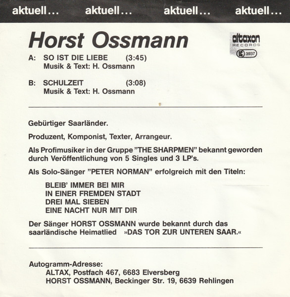 Vinyl / Horst Ossmann - So Ist Die Liebe / Schulzeit