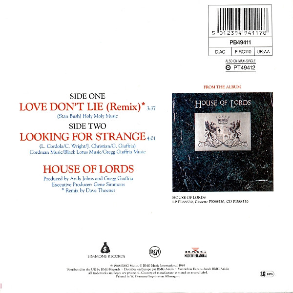 Vinyl / House Of Lords (2) - Love Don't Lie