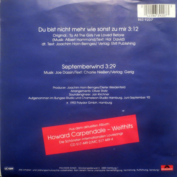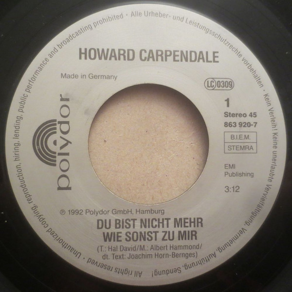 Vinyl / Howard Carpendale - Du Bist Nicht Mehr So Wie Sonst Zu Mir