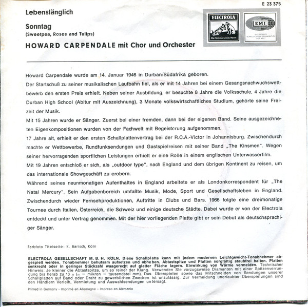 Vinyl / Howard Carpendale - Lebenslänglich / Sonntag (Sweetpea, Roses And Tulips)