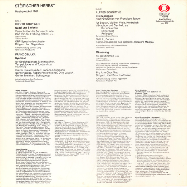 Vinyl / Hubert Stuppner / Franz Cibulka / Alfred Schnittke - Steirischer Herbst Musikprotokoll '81