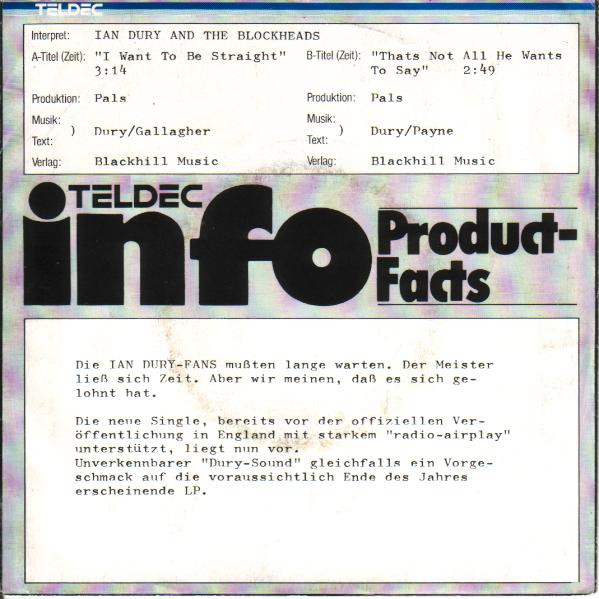 Vinyl / Ian Dury And The Blockheads - I Want To Be Straight