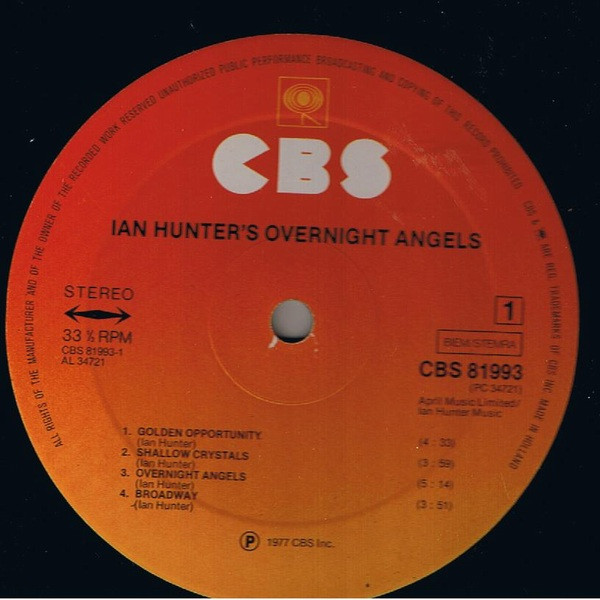 Vinyl / Ian Hunter - Overnight Angels