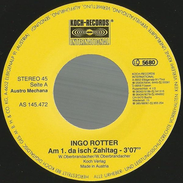 Vinyl / Ingo Rotter - Am 1. Da Isch Zahltag