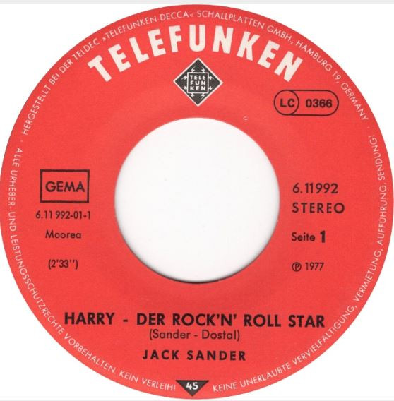 Vinyl / Jack Sander - Harry-Der Rock'n' Roll Star / Meine Träume werden wahr