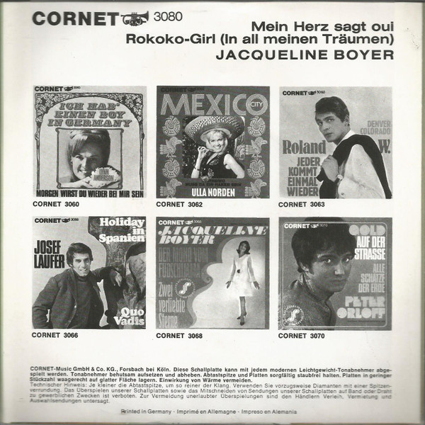 Vinyl / Jacqueline Boyer - Mein Herz Sagt Oui / Rokoko-Girl (In All Meinen Träumen)