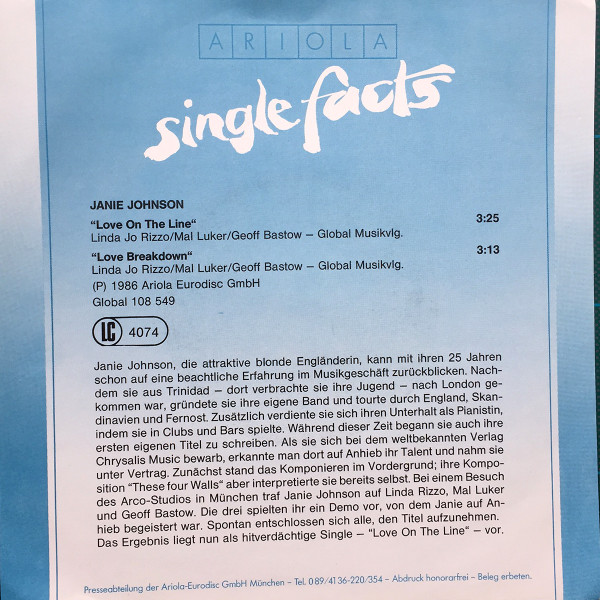 Vinyl / Janie Johnson - Love On The Line