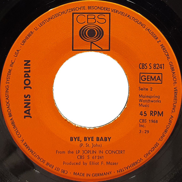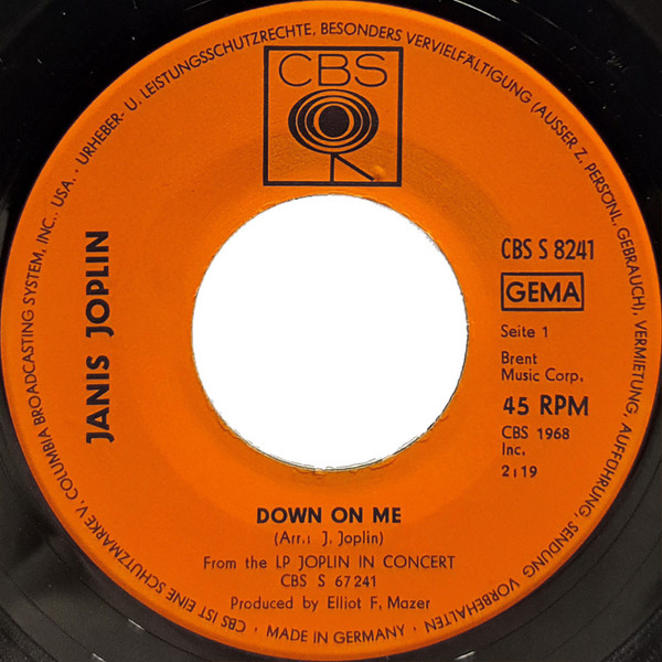 Vinyl / Janis Joplin - Down On Me / Bye, Bye Baby