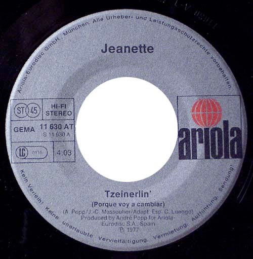 Vinyl / Jeanette (6) - Tzeinerlin' (Porque Voy A Cambiar)