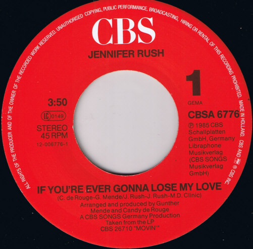 Vinyl / Jennifer Rush - If You're Ever Gonna Lose My Love
