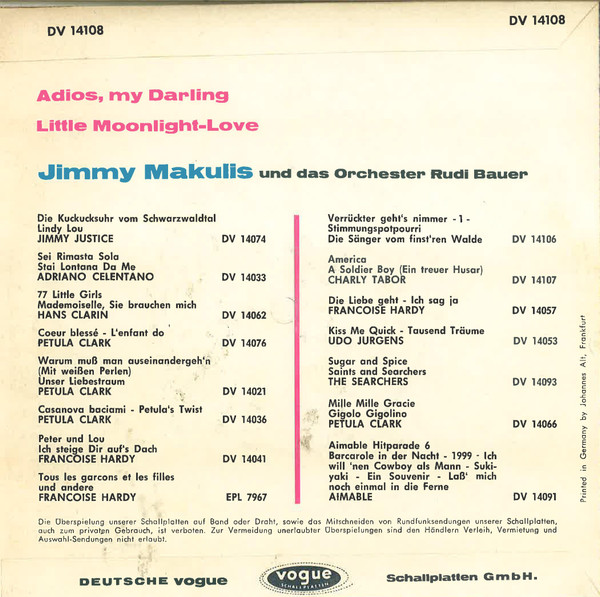 Vinyl / Jimmy Makulis - Adios, My Darling / Little Moonlight-Love