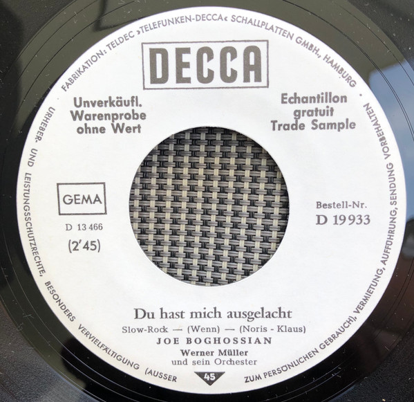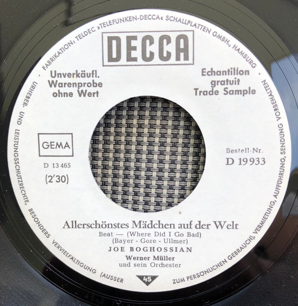 Vinyl / Joe Boghossian - Du Hast Mich Ausgelacht / Allerschönstes Mädchen Auf Der Welt