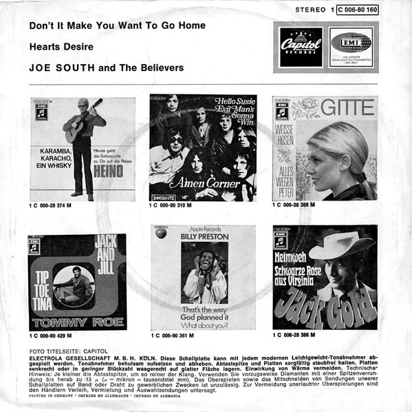 Vinyl / Joe South And The Believers - Don't It Make You Want To Go Home