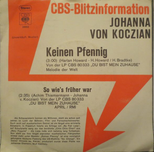 Vinyl / Johanna Von Koczian - Keinen Pfennig / So Wie's Früher War