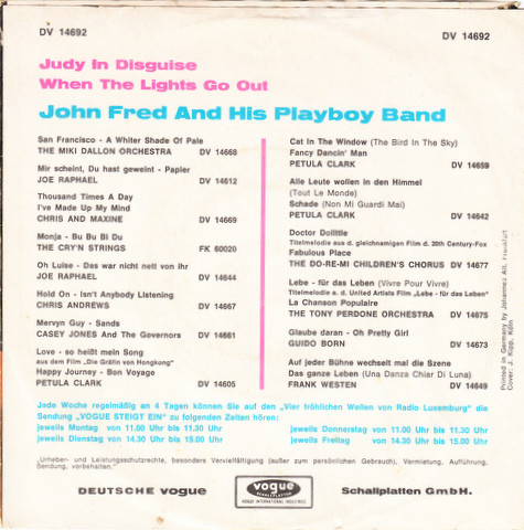 Vinyl / John Fred And His Playboy Band* - Judy In Disguise / When The Lights Go Out