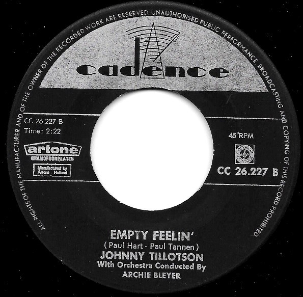 Vinyl / Johnny Tillotson - Out Of My Mind / Empty Feelin'