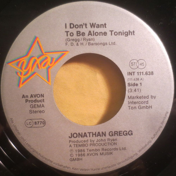 Vinyl / Jonathan Gregg (2) - I Don't Want To Be Alone Tonight