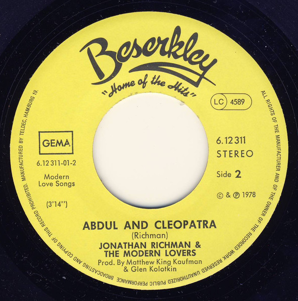 Vinyl / Jonathan Richman & The Modern Lovers - Buzz, Buzz / Abdul & Cleopatra