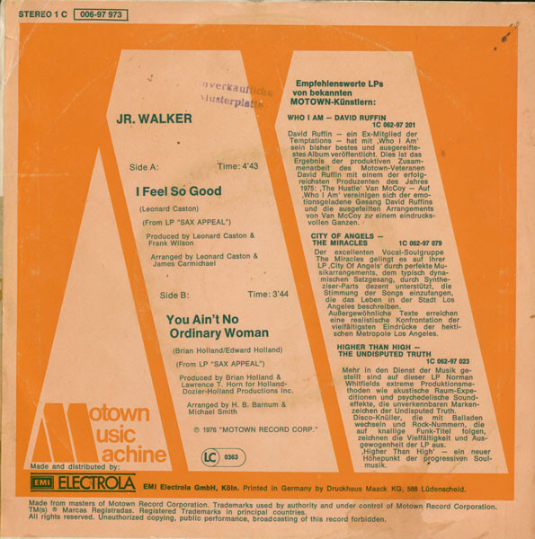 Vinyl / Jr. Walker* - I Feel So Good / You Ain't No Ordinary Woman