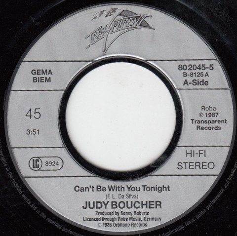 Vinyl / Judy:Boucher* - Can't Be With You Tonight