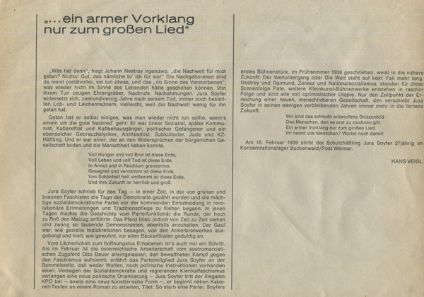 Vinyl / Jura Soyfer / Schmetterlinge - Verdrängte Jahre