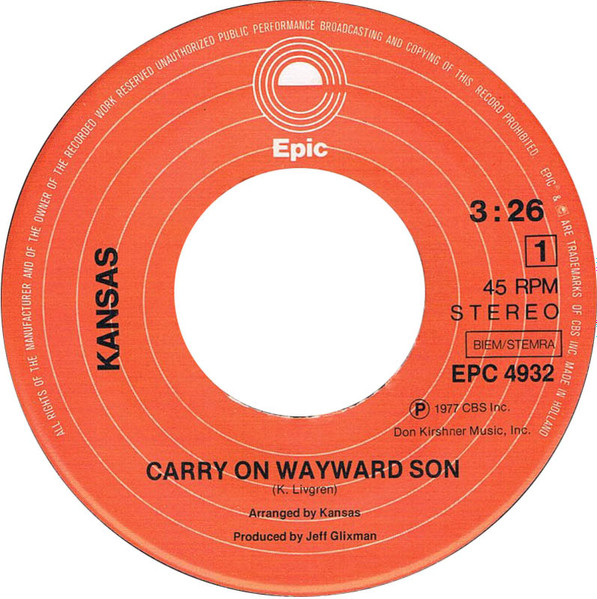 Vinyl / Kansas (2) - Carry On Wayward Son