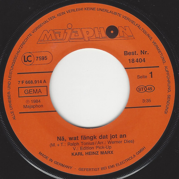 Vinyl / Karl Heinz Marx* - Nä Wat Fängk Dat Jot An