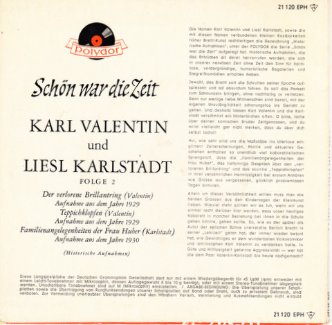 Vinyl / Karl Valentin Und Liesl Karlstadt* - Schön War Die Zeit Folge 2