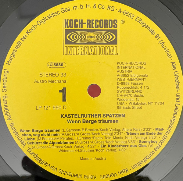 Vinyl / Kastelruther Spatzen Aus Südtirol* - Wenn Berge Träumen
