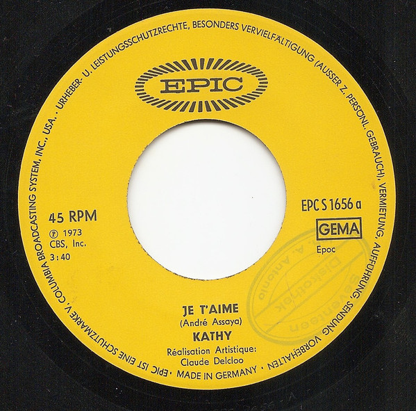 Vinyl / Kathy (2) - Je t'Aime / La Moto