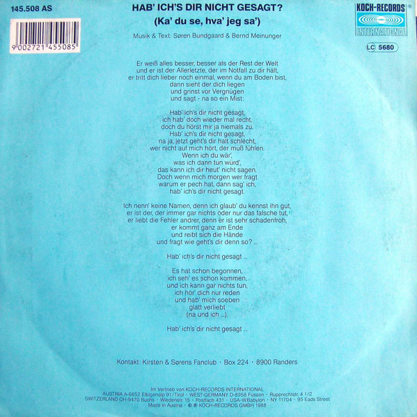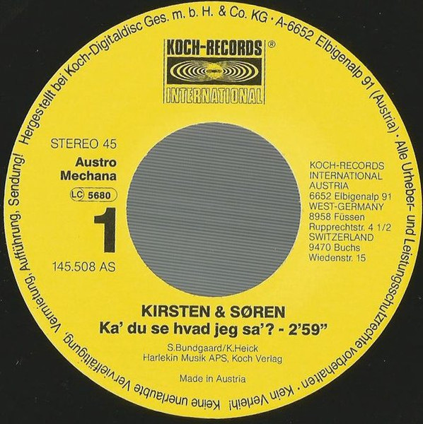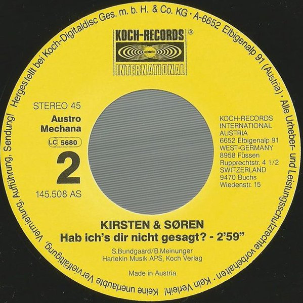 Label: Koch Records International - Cat#: 145.508 AS
