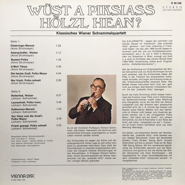 Vinyl / Klassisches Wiener Schrammelquartett* - Wüst A Piksiass Hölzl Hean?