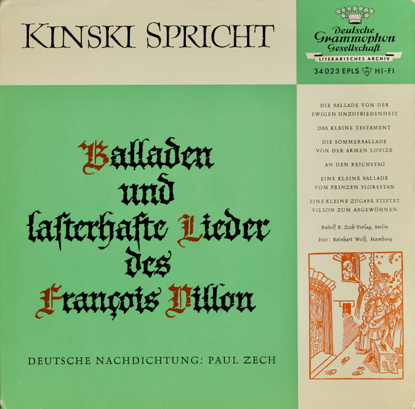 Vinyl / Klaus Kinski - Kinski Spricht Balladen Und Lasterhafte Lieder Des François Villon